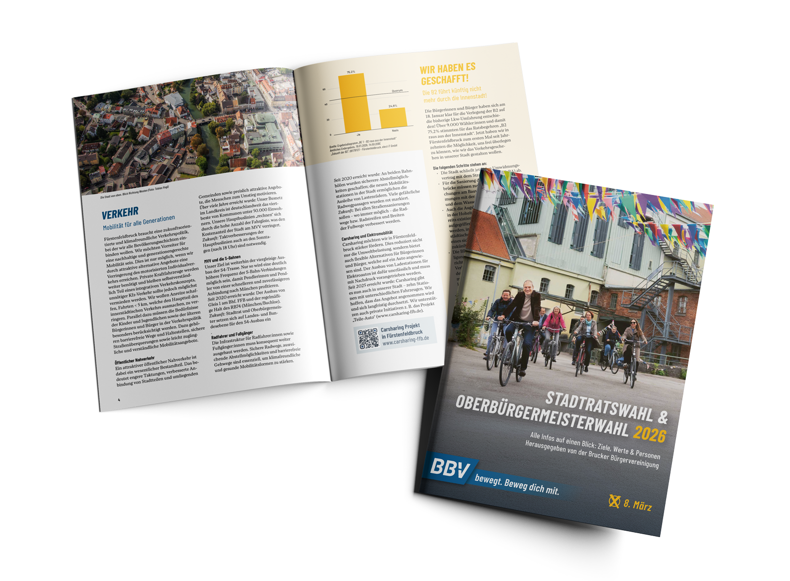 In dieser Broschüre können Sie sich einen Überblick über unser Programm und unsere Kandidatinnen und Kandidaten verschaffen. Neben erfahrenen Mandatsträgern und Mandatsträgerinnen finden Sie junge Bewerberinnen und Bewerber, die mit frischem Schwung und innovativen Ideen Verantwortung für Bruck übernehmen wollen. Unsere Kandidat:innen üben die unterschiedlichsten Berufe aus und stammen aus allen Stadtteilen Brucks. Tatkräftig möchte jede/r von ihnen unsere Stadt noch lebens- und liebenswerter gestalten.